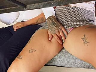 Teachers having sex in teachers lounge. Emotions soar in classroom lesbian encounter.